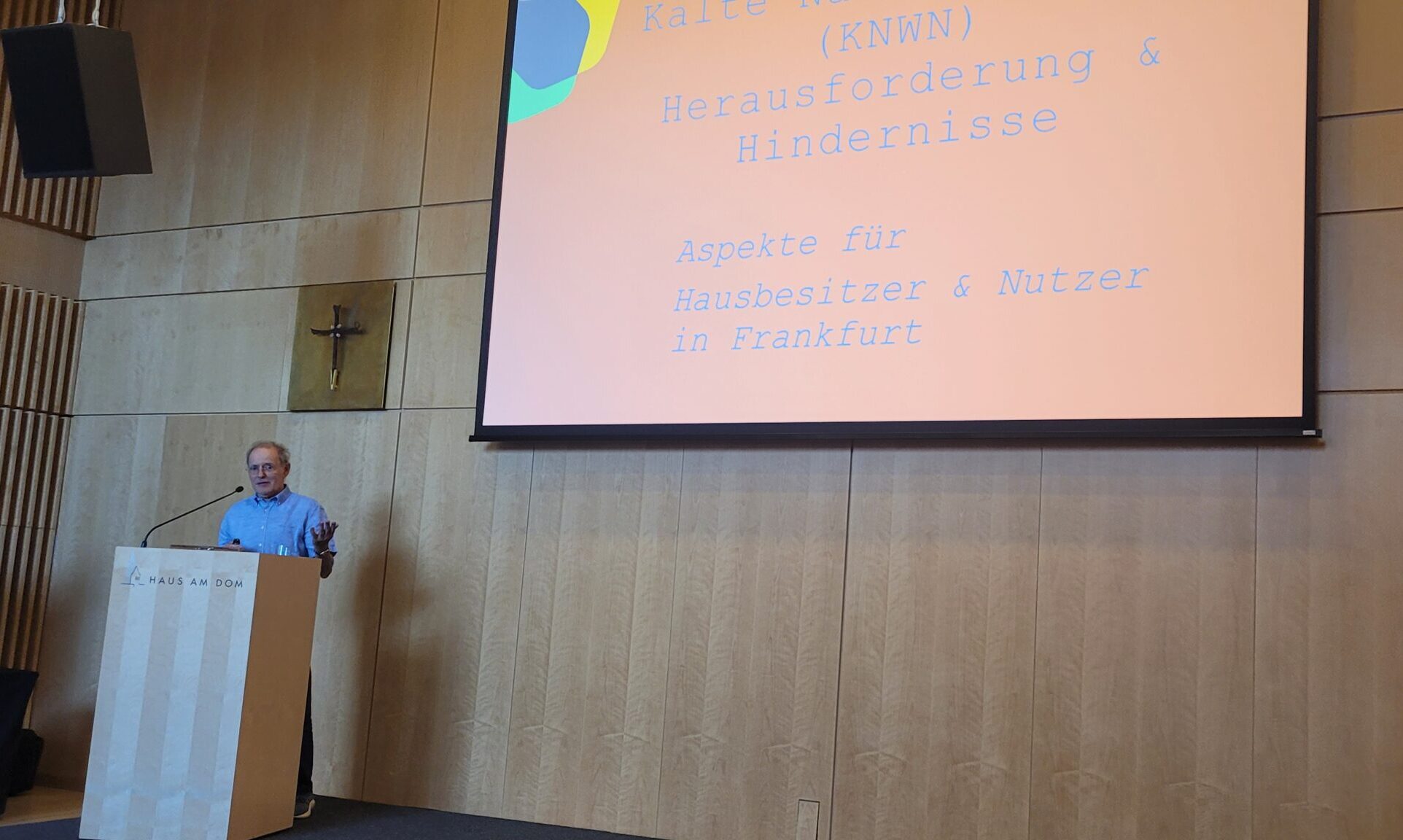 Für die Frankfurter Bürgerenergiegenossenschaft (FraBeG) mit dabei war Uli Scheel. In einem Vortrag berichtete er dem Fachpublikum über Rahmenbedingungen und Herausforderungen bei Kalten Nahwärme-Netzen und schilderte die Konsequenzen für Hausbesitzer und Mieterinnen und Mieter. Sinn machen könnten diese Netze in Ergänzung zur Fernwärme in Zonen mit geringer Wärmedichte. Hier liege eine große Chance für Energiegenossenschaften, die durch lokale Nähe und Bürgerbeteiligung Akzeptanz finden könnten, so Scheel. Dies dürfte sich bei externen Investoren anders verhalten, deren Fokus auf der Gewinnerzielung liegt.